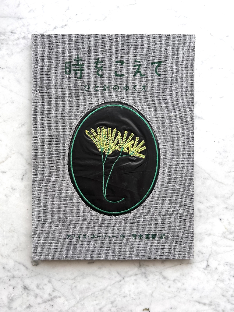最後に紹介するのは、『時をこえて ひと針のゆくえ』だ。小ロットで手作り感のある本を発信することで、今どきの大量流通、大量断裁(悲!)の本のシーンに、温かい一石を投じ続けるインドの出版社タラブックス(日本語版はタムラ堂)から出ている本なのだが、なんと驚くことに、黒いビニール袋に植物の手刺繍がしてある作品15葉からなる(表紙には、ミシン刺繍してある本物の黒いビニールが使われている!)。