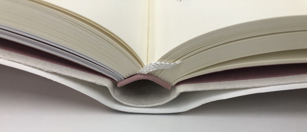 ホローバックは、こんな感じで(背と本文の間に空間ができて、開きが良い)