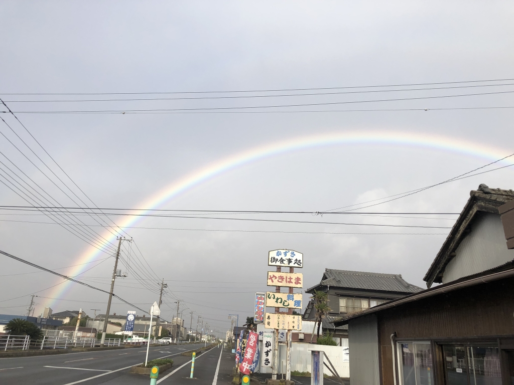 「あ、虹」と誰かが叫び、みんなで車を降りて空を見上げると、ずっと曇天で小雨も降っていた九十九里の空に、大きな美しい虹がかかっています。この企画のスタートを祝福するかのように出現した虹はなかなか壮観で、みんなでバシャバシャと写真を撮り、冬の海岸を後にしたのでした。
