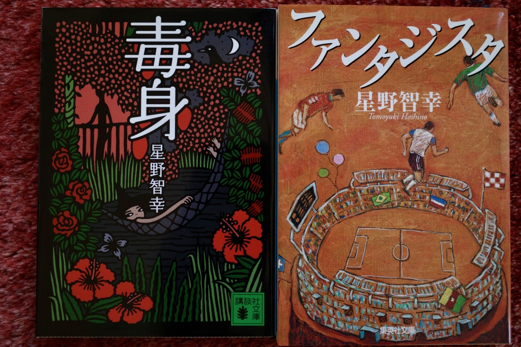 二つ目と三つ目は文庫本で、岩清水さやかさんがイラストを担当した『毒身』(講談社文庫)と、向坂万基子さんに描いていただいた『ファンタジスタ』(集英社文庫)。いろいろな要求に応えて何度も作り直してくださって、完璧な装幀になった。